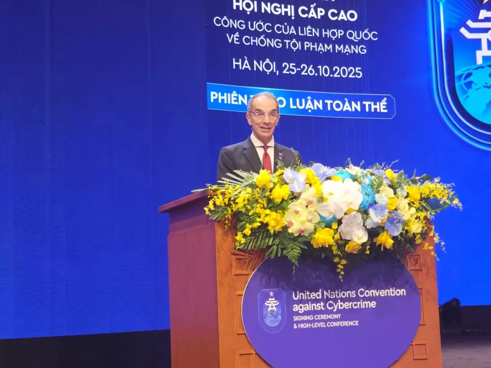 وقعت مصر على اتفاقية الأمم المتحدة لمكافحة الجريمة السيبرانية خلال فعاليات المؤتمر الذى استضافته العاصمة الفيتنامية هانوى؛ حيث قام بالتوقيع الدكتور عمرو طلعت وزير الاتصالات وتكنولوجيا المعلومات، رئيس وفد مصر رفيع المستوى المشارك فى مراسم التوقيع التى شهدها لوونج كونج رئيس جمهورية فيتنام الاشتراكية، وأنطونيو جوتيريش الأمين العام للأمم المتحدة، والدكتورة غادة والى المديرة التنفيذية لمكتب الأمم المتحدة المعنى بالمخدرات والجريمة، والسفير هانى مصطفى سفير جمهورية مصر العربية بجمهورية فيتنام، ورؤساء وفود الدول المشاركة في المؤتمر.